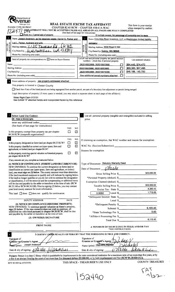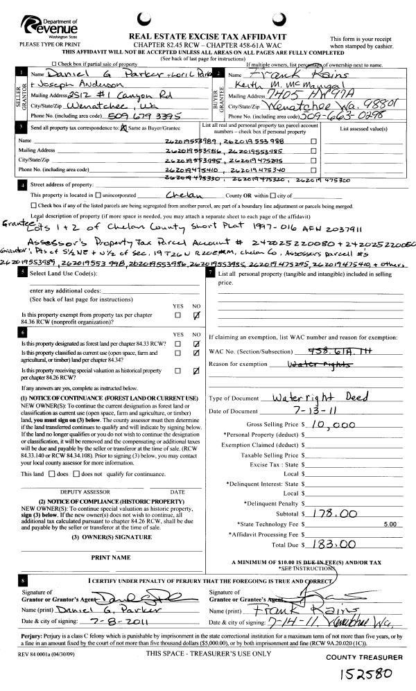 | Mailing Address: | PO BOX 215 ENTIAT, WA 98822 | % Ownership: | % |