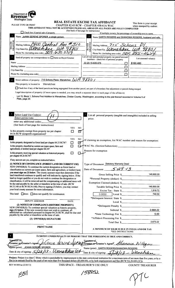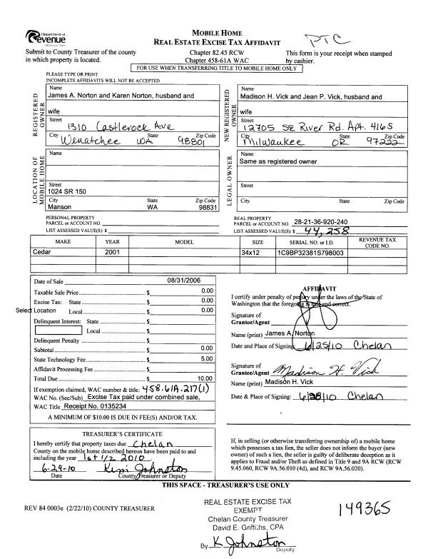 | 6 | 05/19/1999 | O | Other | CHELAN CO | MILNE JAMES |  |  |  | 0 | 2053387 |
