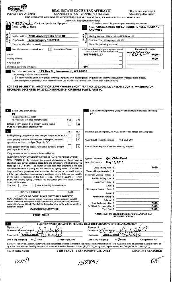 | 7 | 01/21/1999 | Q | Quit Claim Deed | CASHMERE HGTS | MILNE ALLEN |  |  |  | 0 | 2045162 |