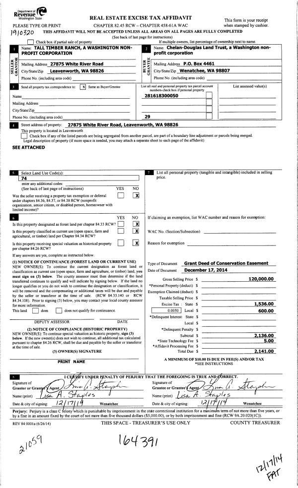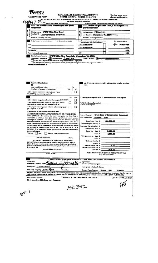 | 1 | 10/22/2010 | EASEMENT | Easement | | CHELAN-DOUGLAS LAND TRUST - DO NOT USE-PLEASE USE 18007 | | | $400,000.00 | 150332 | 2331822 |