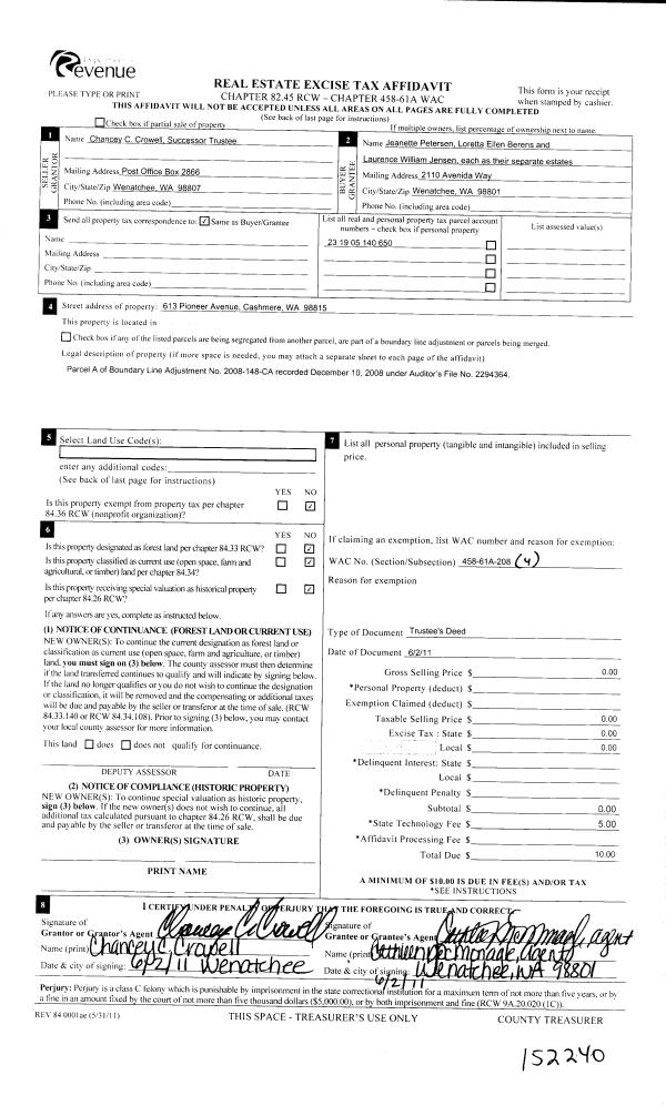 | Mailing Address: | 12431 S LAKESHORE RD CHELAN, WA 98816 | % Ownership: | % |
