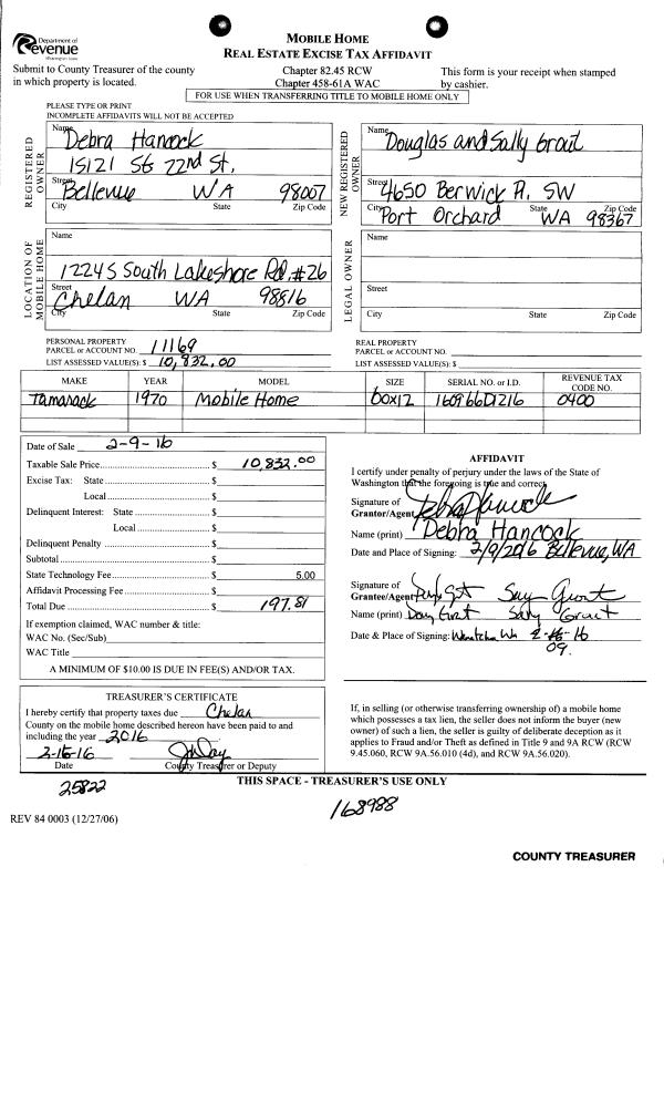 | Mailing Address: | PO BOX 855 CHELAN, WA 98816 | % Ownership: | % |