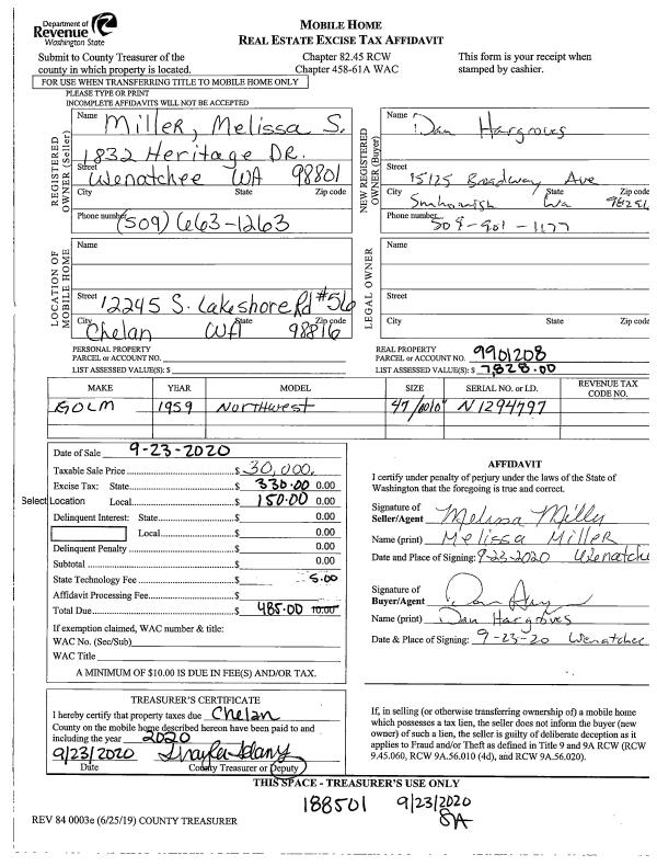 | 1 | 09/23/2020 | MH TITLE | Mobile Home Title | MILLER MELISSA S | HARGROVES DANIEL L | | | $30,000.00 | 188501 | |