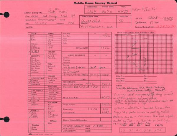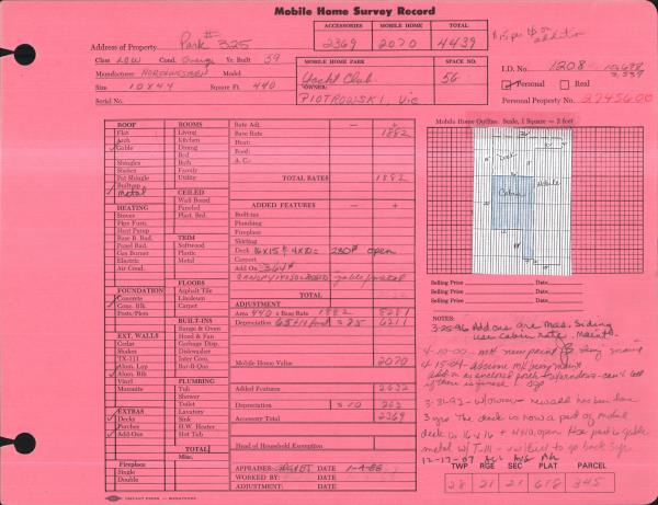 | | CP-G | Carport/Patio Cover Gable Roof | FAIR | MBL HOME | 1959 | 700.0 |