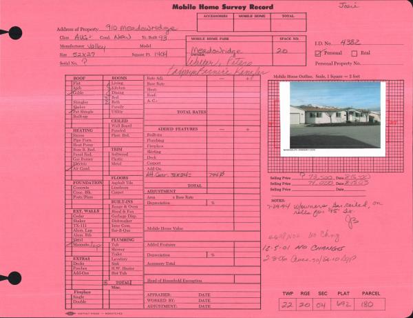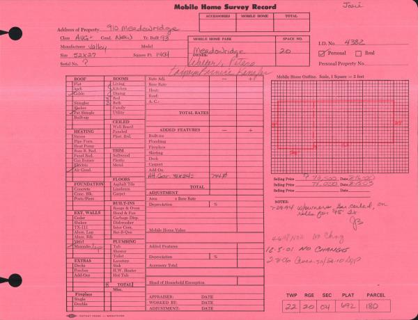 | Improvement #1: | MOBILE HOME | State Code: | 15 | 1404.0 sqft | Value: | N/A |