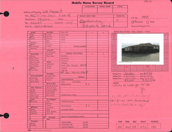 | Improvement #1: | MOBILE HOME | State Code: | 15 | 1404.0 sqft | Value: | N/A |