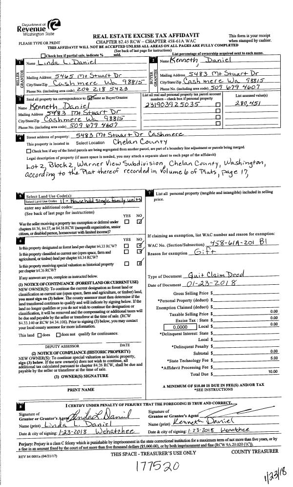 | Mailing Address: | 914 MEADOWRIDGE DR #26 WENATCHEE, WA 98801 | % Ownership: | % |