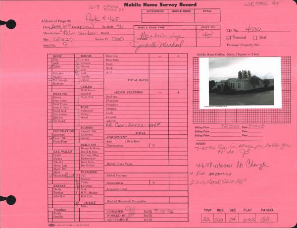 | 2 | 12/07/2016 | MH TITLE | Mobile Home Title | DIKE BOYD LINDA | WORTMAN BRUCE & MARIAN C | | | $88,000.00 | 172516 | |