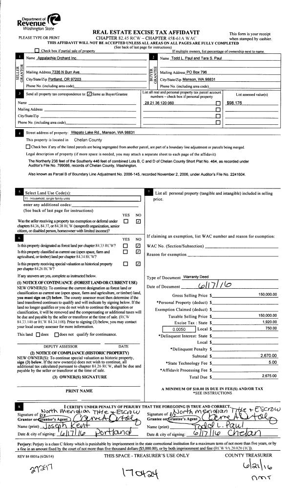 | Mailing Address: | 2846 N BRECKENRIDGE DR EAST WENATCHEE, WA 98802 | % Ownership: | % |