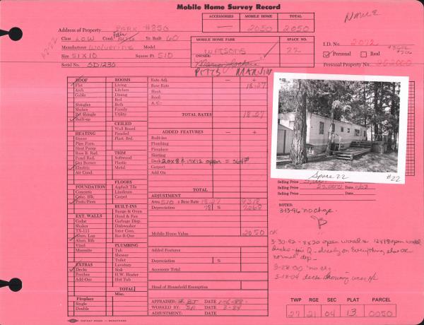 | Improvement #1: | MOBILE HOME | State Code: | 15 | 510.0 sqft | Value: | N/A |