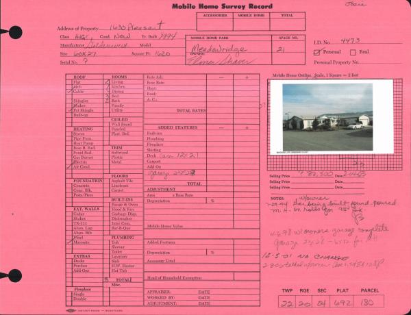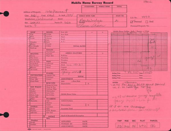 | Property ID: | 12213 | Abbreviated Legal Description: | MEADOW RIDGE MOBILE HOME PARK SPACE 21 94 GOLDENWEST 60X27 |