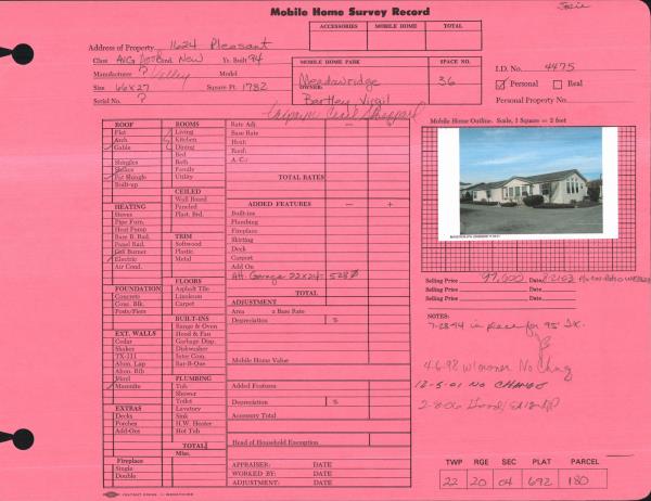 | Property ID: | 12215 | Abbreviated Legal Description: | MEADOW RIDGE MOBILE HOME PARK SPACE 36 94 VALLEY 66X27 |