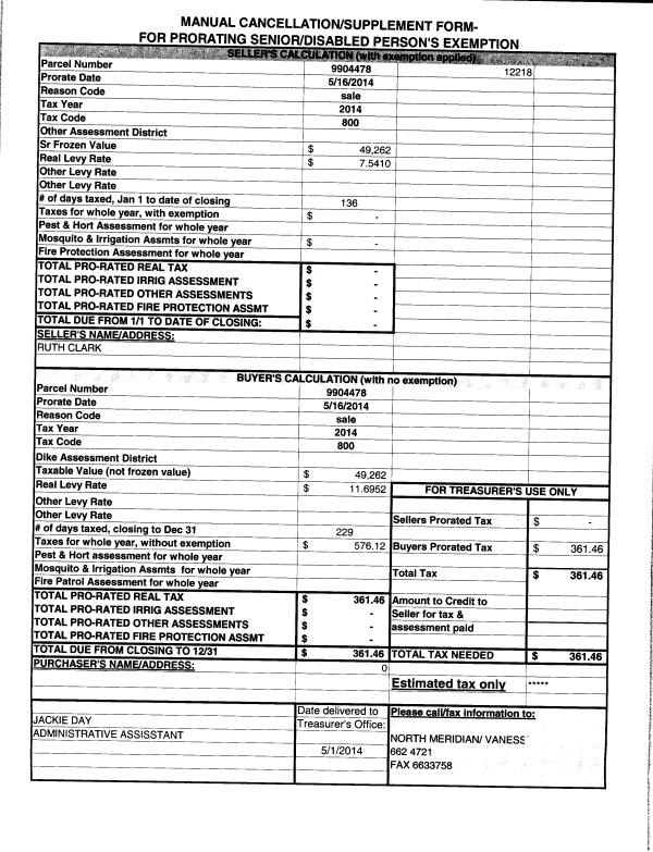 | | | | | Taxes w/o Exemptions: | N/A | | |