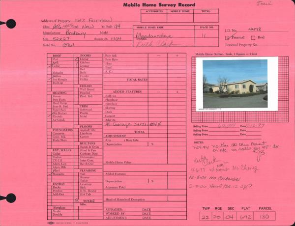 | Improvement #1: | MOBILE HOME | State Code: | 15 | 1404.0 sqft | Value: | N/A |