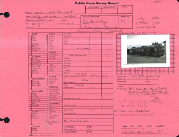 | Property ID: | 12219 | Abbreviated Legal Description: | MEADOW RIDGE MOBILE HOME PARK SPACE 39 94 GOLDENWEST 52X27 |