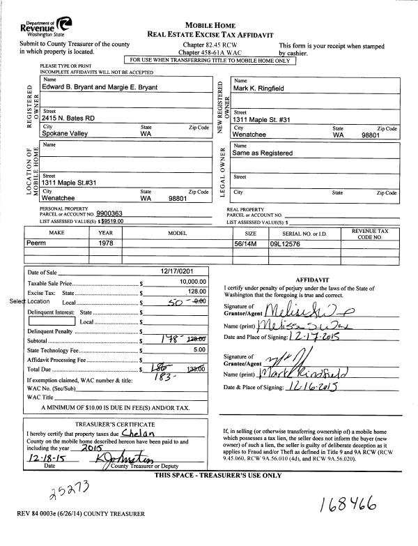 | 1 | 08/31/2018 | MH TITLE | Mobile Home Title | RAMIREZ CELIA I | SERVIN JASMIN | | | $3,050.00 | 180347 | |