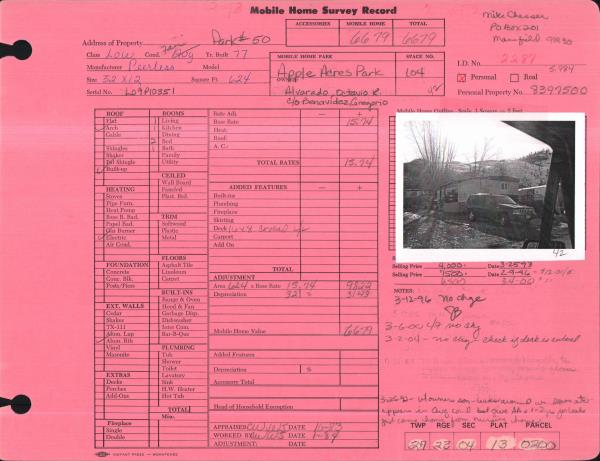 | 2 | 03/26/2010 | MH TITLE | Mobile Home Title | PASTOR JAVIER C | APPLE ACRES MOBILE HOME PARK | | | $0.00 | 155263 | |