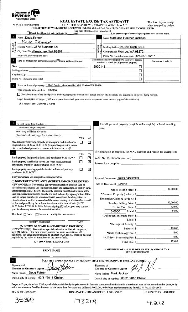 | Property ID: | 12482 | Abbreviated Legal Description: | LAKE CHELAN YACHT CLUB SPACE 68 67 BUDDY 60EX12 |