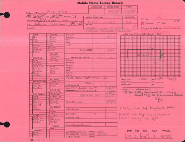 | Property ID: | 12500 | Abbreviated Legal Description: | APPLE ACRES MOBILE HOME PARK SPACE 54 78 HILLCREST 56X14 |