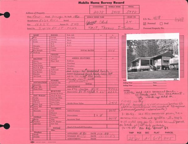 | | CP-G | Carport/Patio Cover Gable Roof | FAIR | MBL HOME | 1960 | 540.0 |
