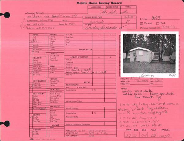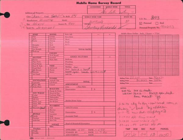 | Improvement #1: | MOBILE HOME | State Code: | 15 | 924.0 sqft | Value: | N/A |