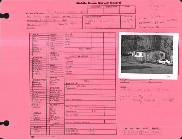 | Property ID: | 12893 | Abbreviated Legal Description: | 1997 FLEETWOOD 41X26 0 ACRES |