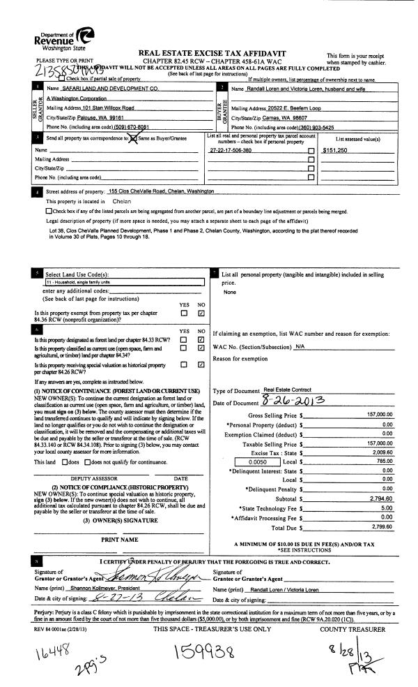 | Mailing Address: | 122 JEWELL ST ENUMCLAW, WA 98022 | % Ownership: | % |