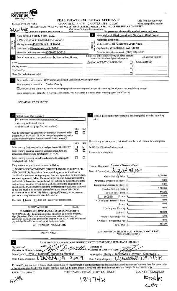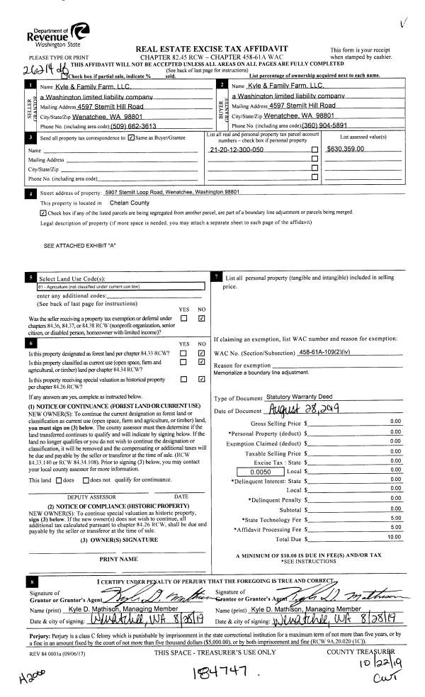 | 1 | 10/22/2019 | SWD | Statutory Warranty Deed | KYLE & FAMILY FARM LLC | KYLE & FAMILY FARM LLC | | | | 184747 | 2504796 BLA |