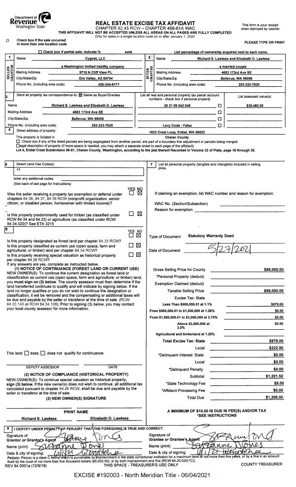 CASHMERE, WA 98815 | T 23N R 18EWM S 14 NENW SWNW NWSW 120.0000 ACRES |