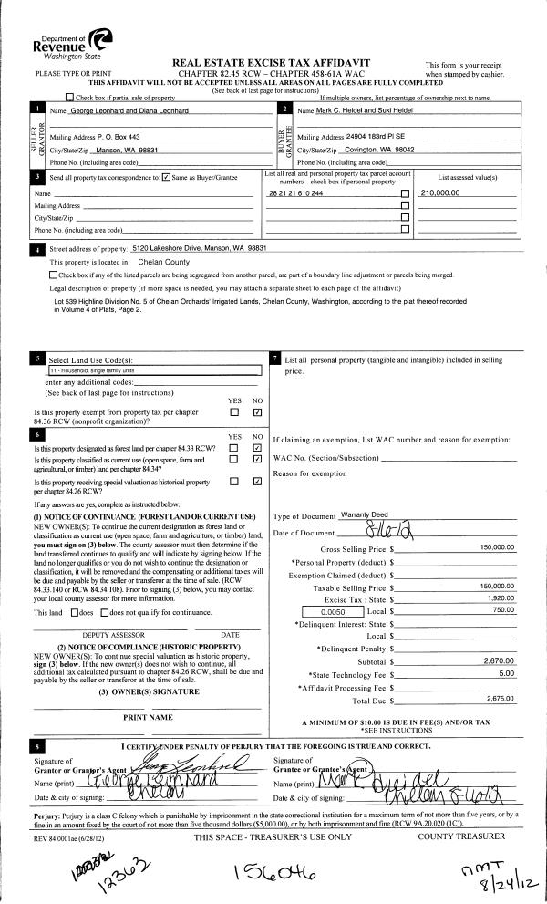 Mailing Address: | PO BOX 1687 WENATCHEE, WA 98807 | % Ownership: | % |