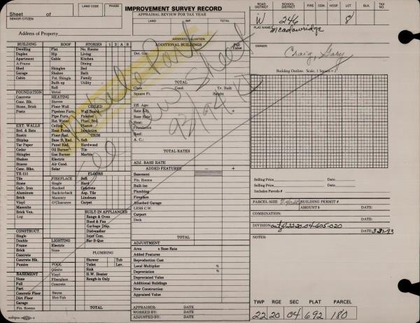 | 4 | 09/16/1992 | W | Warranty Deed | | GARY A CRAIG | 978 | 1361 | | 0 | |