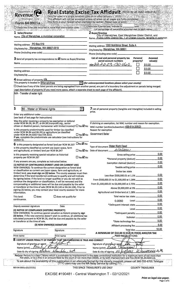 | 12 | 06/24/1994 | SWD | Statutory Warranty Deed | | CITY OF WENATCHEE | 1023 | 1346 | $471,078.00 | 8176700 | |