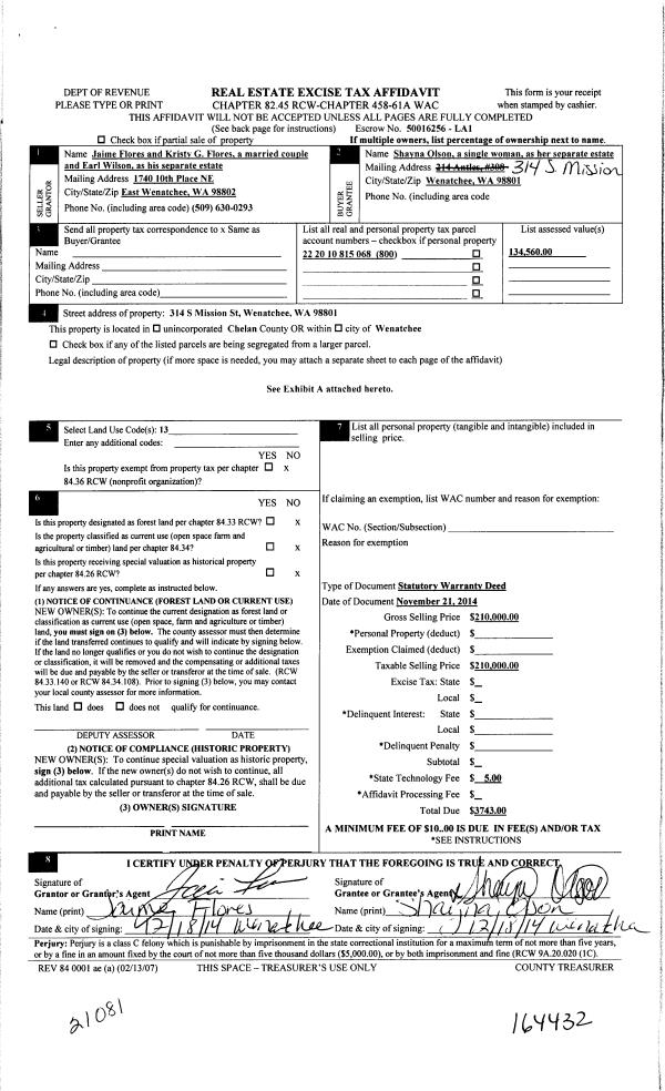 | Mailing Address: | 3164 ALLEN LN PESHASTIN, WA 98847 | % Ownership: | % |