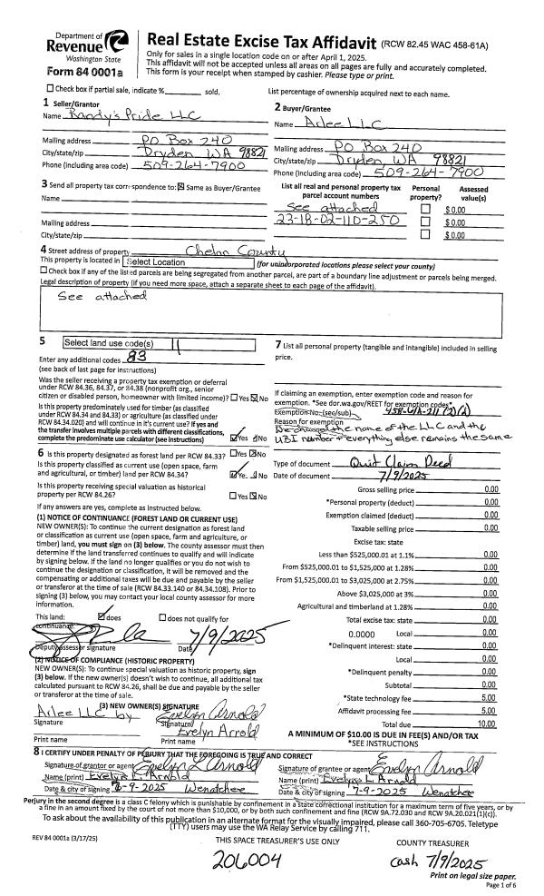 | 1 | 07/09/2025 | Q | Quit Claim Deed | ARLEE LLC | ARLEE LLC | | | $0.00 | 206004 | 2609955 |