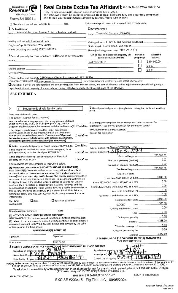 | 1 | 09/05/2024 | SWD | Statutory Warranty Deed | PEERY KELTON M & PATRICIA A | MC CORMICK THERRON | | | $273,000.00 | 203415 | 2598651 |