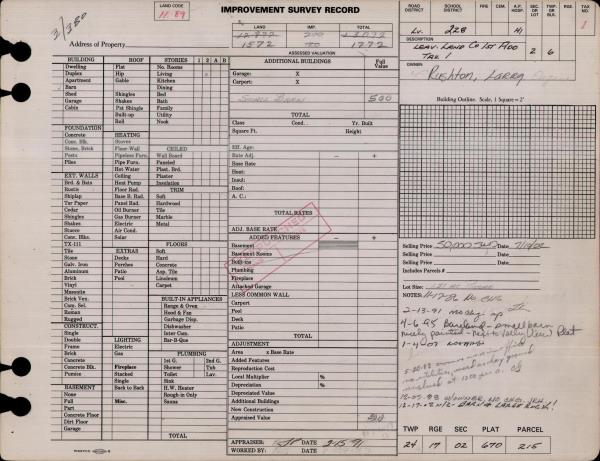 | 10 | 07/19/2002 | SWD | Statutory Warranty Deed | | RUSHTON LARRY&MARYANNE | | | $50,000.00 | 11459400 | 2121105 |