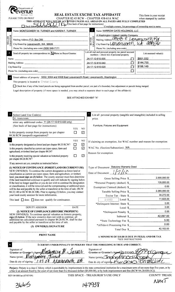 | 2 | 01/07/2010 | SWD | Statutory Warranty Deed | TURNER MONTGOMERY M | NARROW GATE HOLDINGS LLC | | | $2,365,000.00 | 147938 | 2317334 |
