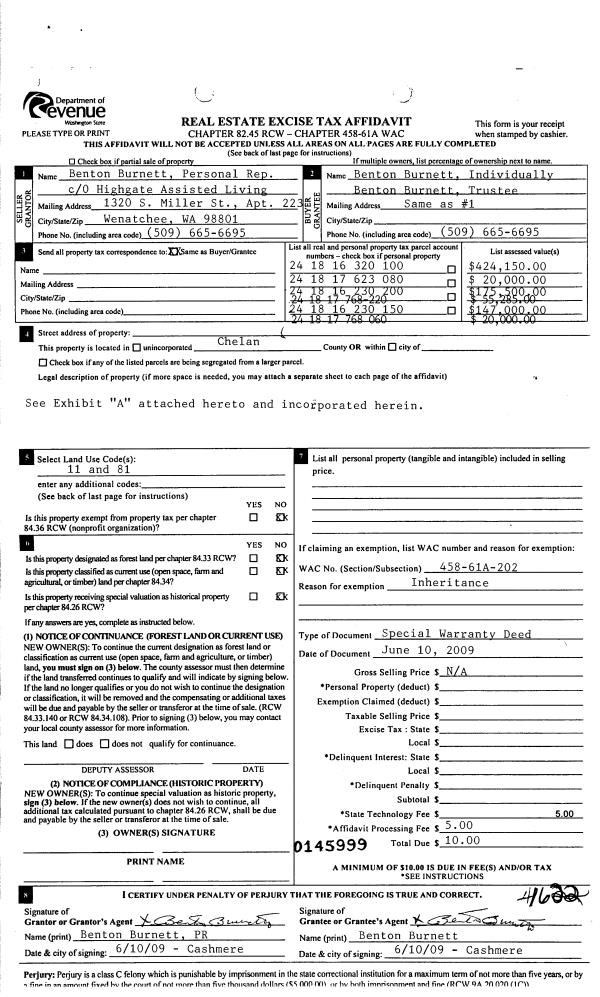 | 2 | 06/10/2009 | SWD | Statutory Warranty Deed | BURNETT BRIAN | | | | $10.00 | 145999 | 2305095 |