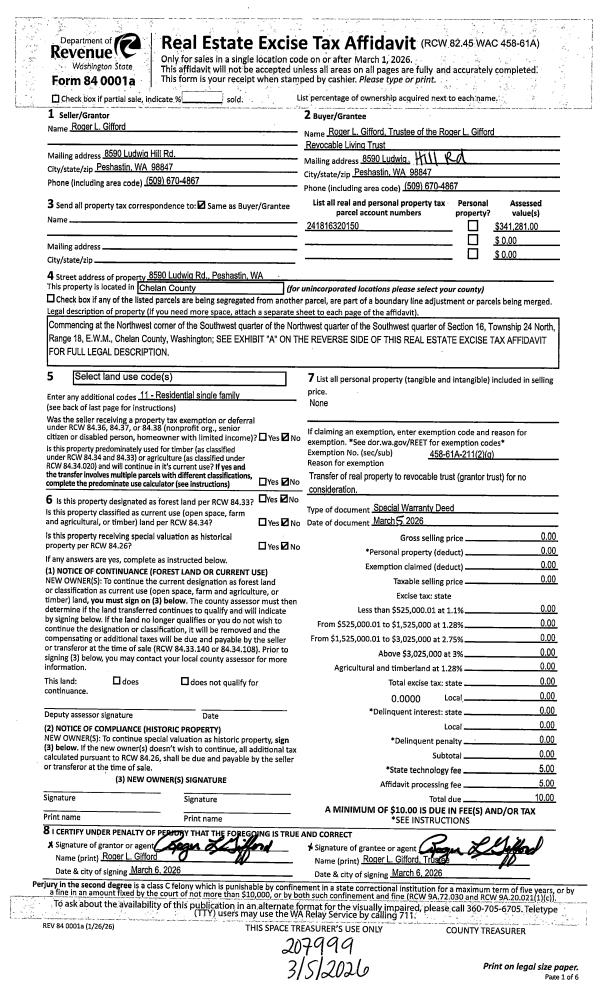 | 1 | 03/05/2026 | SP WD | Special Warranty Deed | GIFFORD ROGER | GIFFORD ROGER REVOCABLE LIVING TRUST | | | $0.00 | 207999 | 2619183 |