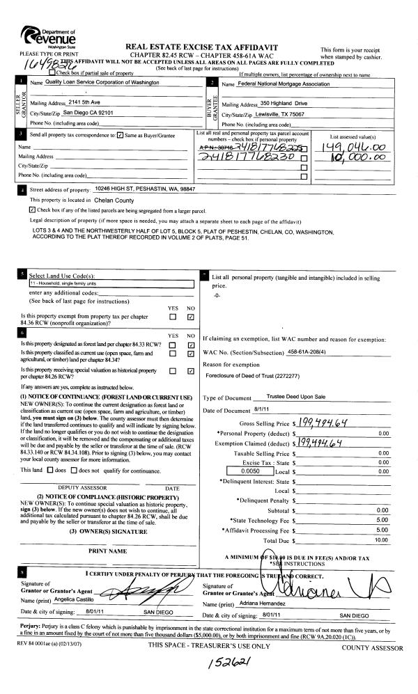 | 3 | 08/05/2011 | TD | Trustee Deed | LANG JASON& MELINDA | FEDERAL NATIONAL MORTGAGE ASSOCIATION | | | $199,495.00 | 152621 | 2346971 |