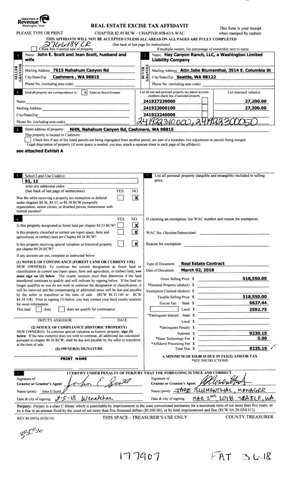 | 4 | 03/06/2018 | C | Real Estate Contract | SCOTT JOHN E | HAY CANYON RANCH LLC | | | $518,550.00 | 177907 | 2474000 |