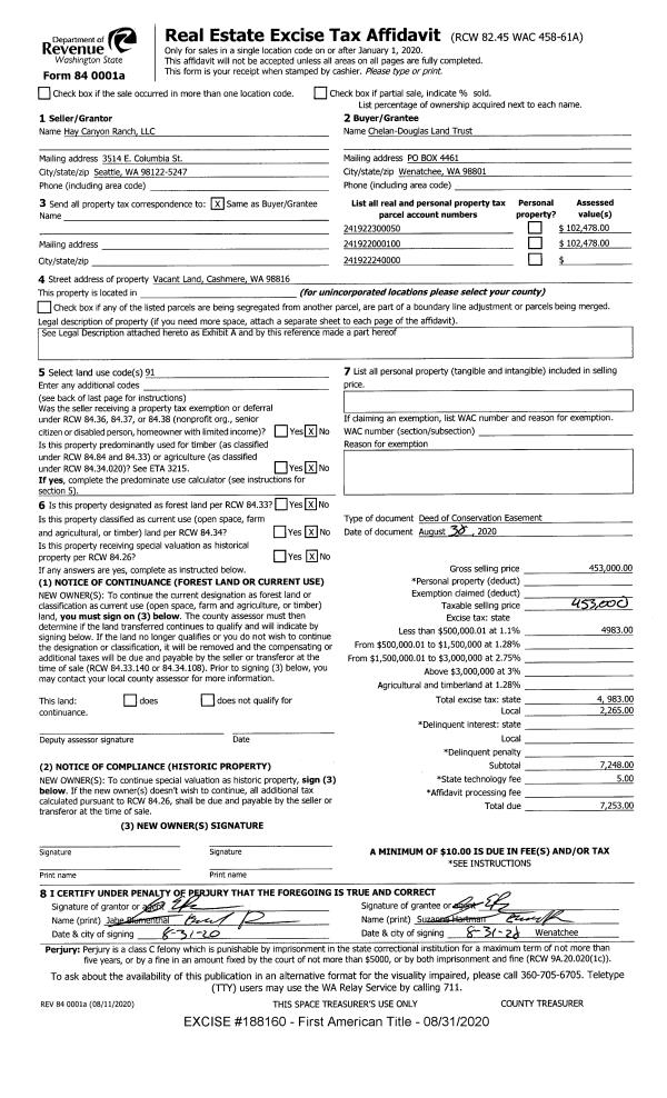 | 1 | 01/30/2026 | SWD | Statutory Warranty Deed | HAY CANYON RANCH LLC | CASHMERE CANYONS PRESERVE LLC | | | $0.00 | 207767 | 2618008 |
