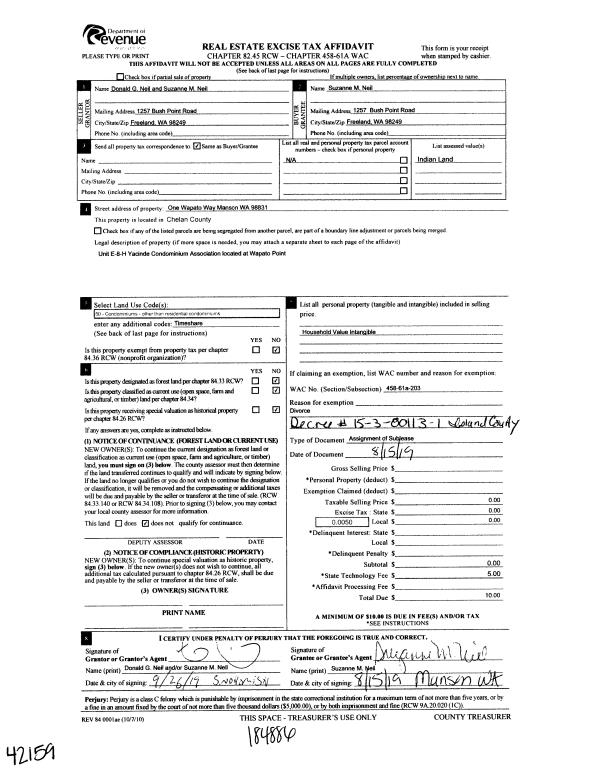 | 2 | 10/31/2019 | SWD | Statutory Warranty Deed | KILE LYLE O & LORRAINE H | RSTA INVESTMENTS LLC | | | $1,750,000.00 | 184859 | 2505335 |