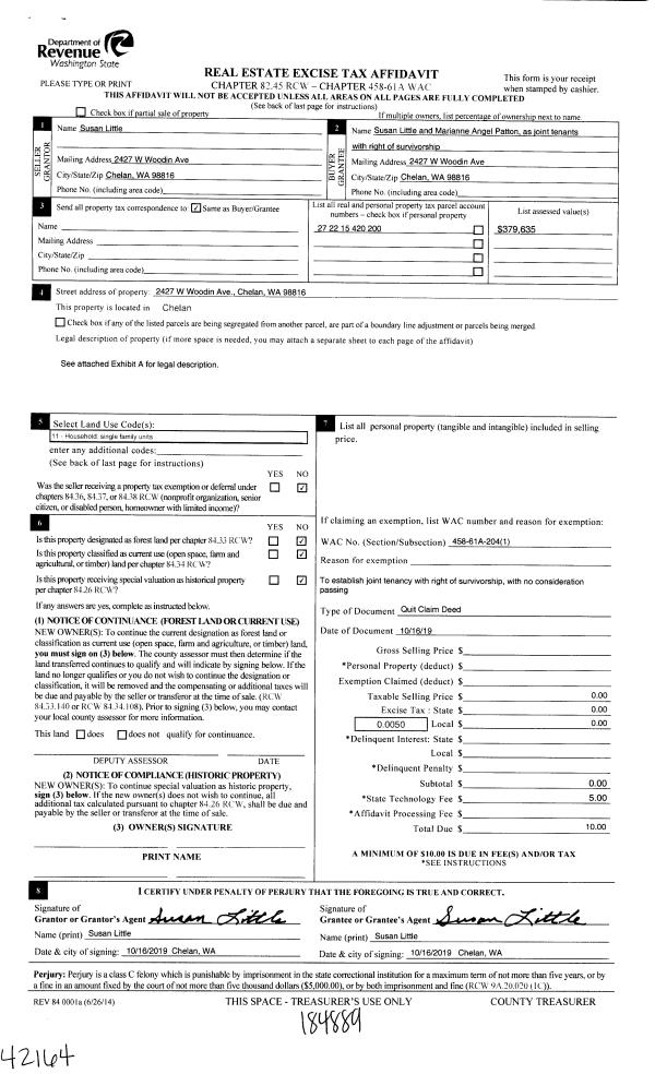 | 1 | 10/31/2019 | SWD | Statutory Warranty Deed | KILE LYLE O & LORRAINE H | RSTA INVESTMENTS LLC | | | $1,750,000.00 | 184859 | 2505335 |
