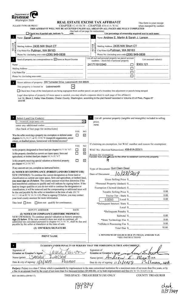 | 1 | 10/31/2019 | SWD | Statutory Warranty Deed | KILE LYLE O & LORRAINE H | RSTA INVESTMENTS LLC | | | $1,750,000.00 | 184859 | 2505335 |