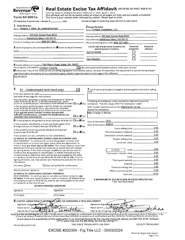 | 2 | 05/03/2024 | Q | Quit Claim Deed | VALEN GREGORY J | ASHLAND INVESTMENTS LLC | | | $0.00 | 202304 | 2593723 |