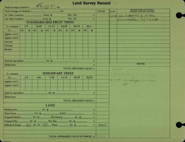| 1 | RES 500 | RESIDUAL $500/A | 20.0000 | 871200.00 | 0.00 | 0.00 | 1.00 | N/A | N/A |