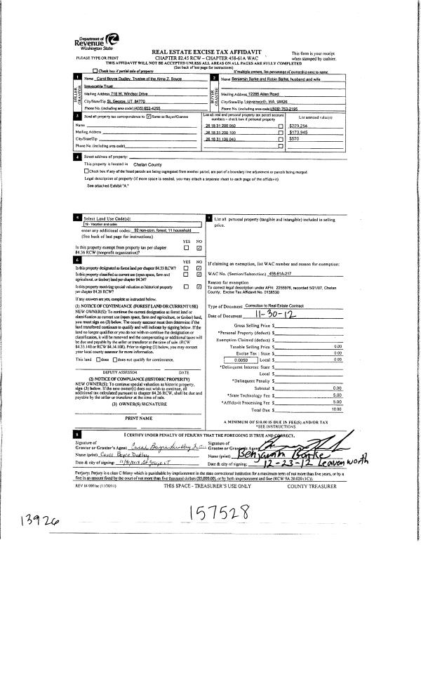 3 | 05/21/2007 | C | Real Estate Contract | BOYCE ALMA A TRUSTEE REV TRUST | BARKE BENJAMIN | | | | 0 | 2255976 |
