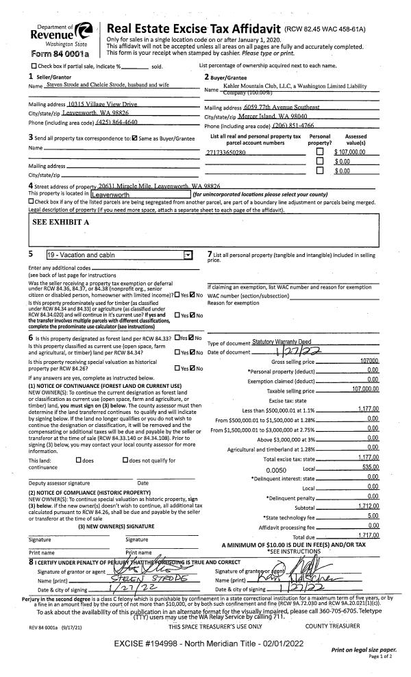 | 1 | 02/01/2022 | SWD | Statutory Warranty Deed | STRODE STEVEN E & CHELCIE R | KAHLER MOUNTAIN CLUB LLC | | | $107,000.00 | 194998 | 2561540 |