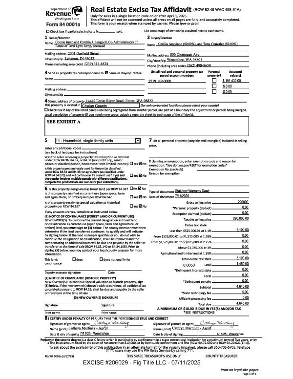 | 1 | 07/11/2025 | SWD | Statutory Warranty Deed | JUMP TERRI | ANGUIANO CECILIA & GONZALEZ TONY | | | $290,000.00 | 206029 | 2610093 |